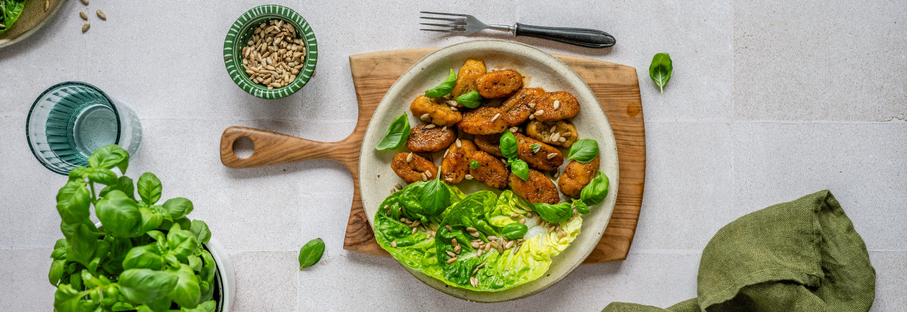 Miód wymieszaj z Sosem sojowym Kikkoman i podgrzej na patelni. Usmaż ugotowane pierożki w powstałej glazurze. Podawaj z sałatą i pestkami słonecznika.
