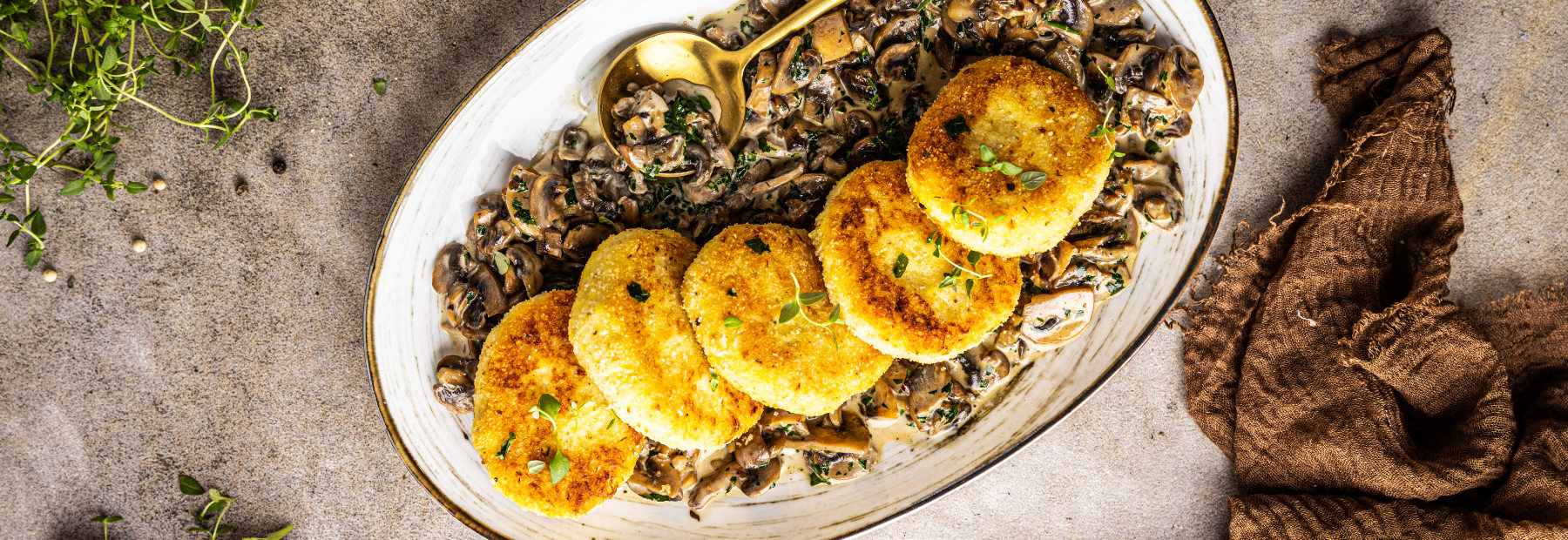 Placuszki podawaj z sosem pieczarkowym, posypane natką pietruszki.